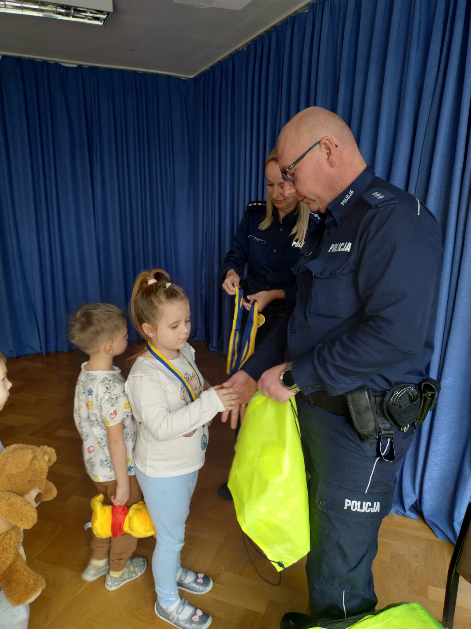 ''Przedszkolak ratuje'' - akcja z udziałem oleskich policjantów oraz funkcjonariusza Państwowej Straży Pożarnej w Oleśnie.